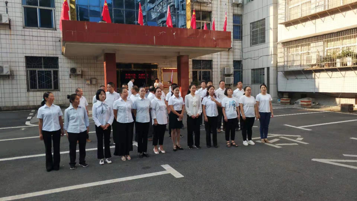 2019年10月1日,在中华人民共和国成立70周年之际,县人大常委会机关干部职工在机关院内举行国庆节升国旗仪式。