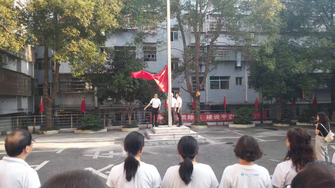 2019年10月1日,在中华人民共和国成立70周年之际,县人大常委会机关干部职工在机关院内举行国庆节升国旗仪式。