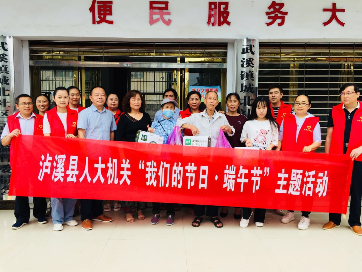 端午将至,为推动习近平新时代中国特色社会主义思想深入人心,培育和践行社会主义核心价值观,通过开展走访慰问活动,进一步了解贫困户的生活及工作情况,倾听他们的意见和诉求,同时让贫困户度过一个祥和的端午佳节,6月24日,在县人大常委会副主任胡世和的带领下,人大机关志愿服务队员在城北社区开展了“我们的节日·端午节”走访慰问志愿服务活动,为五保老人和2名孤儿,送去了粽子及饮料等慰问物品,并提前向他们送去了节日的祝福和美好的祝愿。